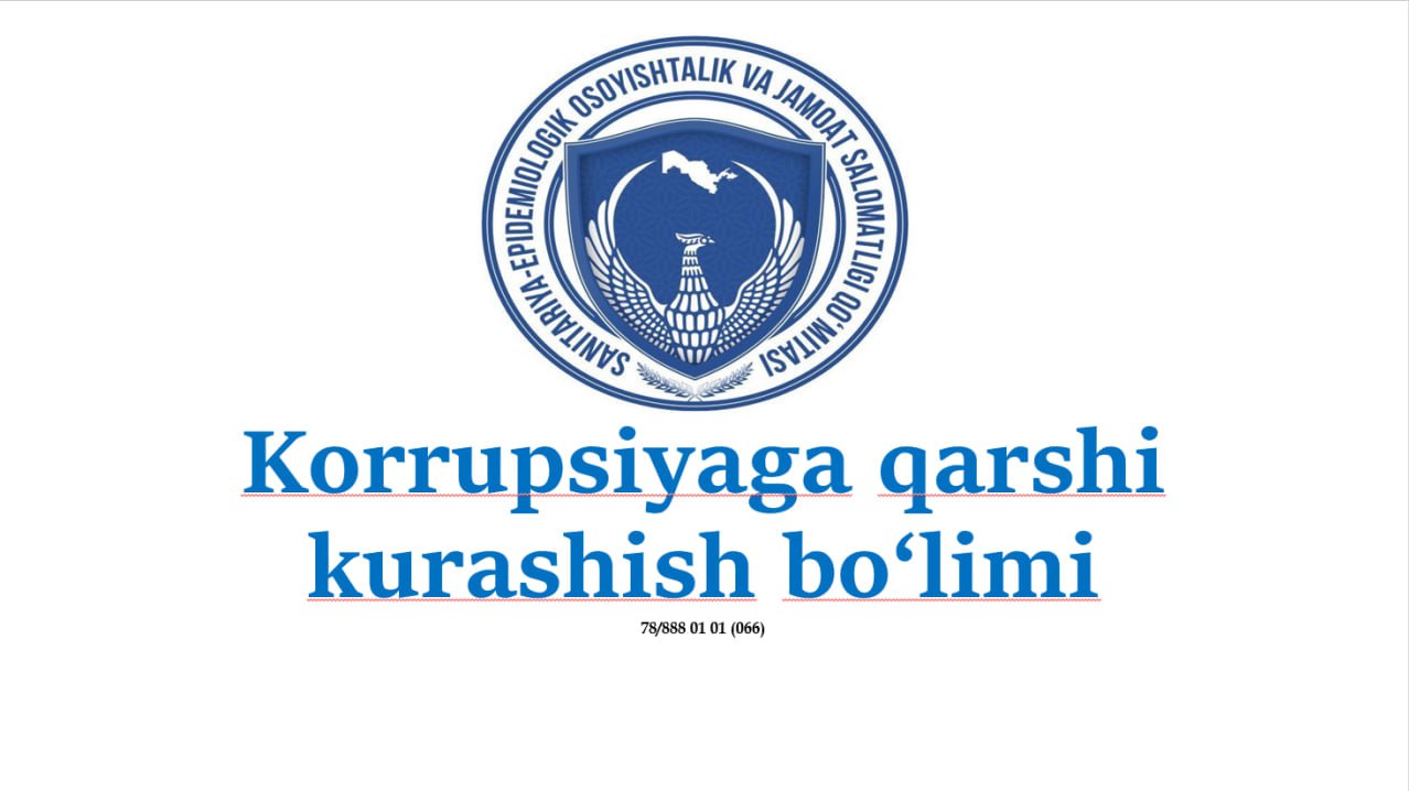 Sanitariya-epidemiologik osoyishtalik va jamoat salomatligi qo‘mitasi va uning tizimida korrupsiya va boshqa noqonuniy xatti-harakatlar yuzasidan quyidagi aloqa vositalari orqali xabar berishingiz mumkin.